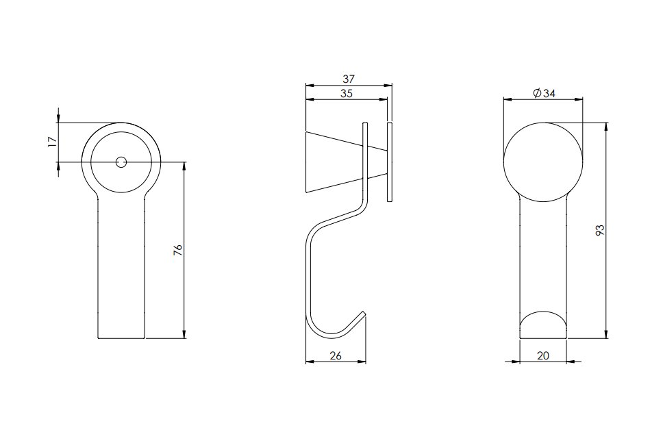 Dieser hochwertige Garderobenhaken aus Aluminium überzeugt durch sein zeitloses Design, seine präzise Verarbeitung und die langlebige, eloxierte Oberfläche. Das robuste Material sowie die widerstandsfähige Veredelung machen ihn zur idealen Wahl für den täglichen Einsatz in Flur, Garderobe, Badezimmer oder Schlafzimmer.