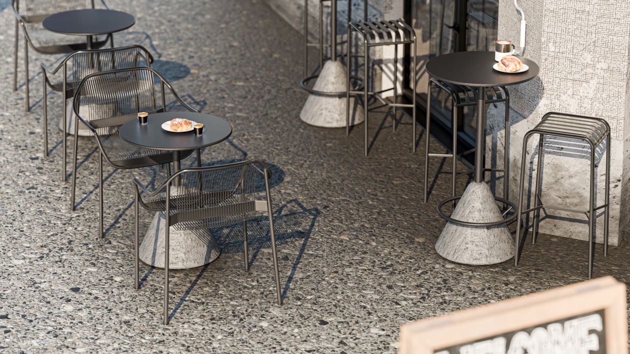 Der schwere Betonfuß sorgt für eine optimale Gewichtsverteilung und verhindert ein Wackeln des Tisches. Der Metallaufsatz ist hochwertig pulverbeschichtet, wodurch das Gestell besonders widerstandsfähig gegenüber Kratzern und Abnutzung ist.